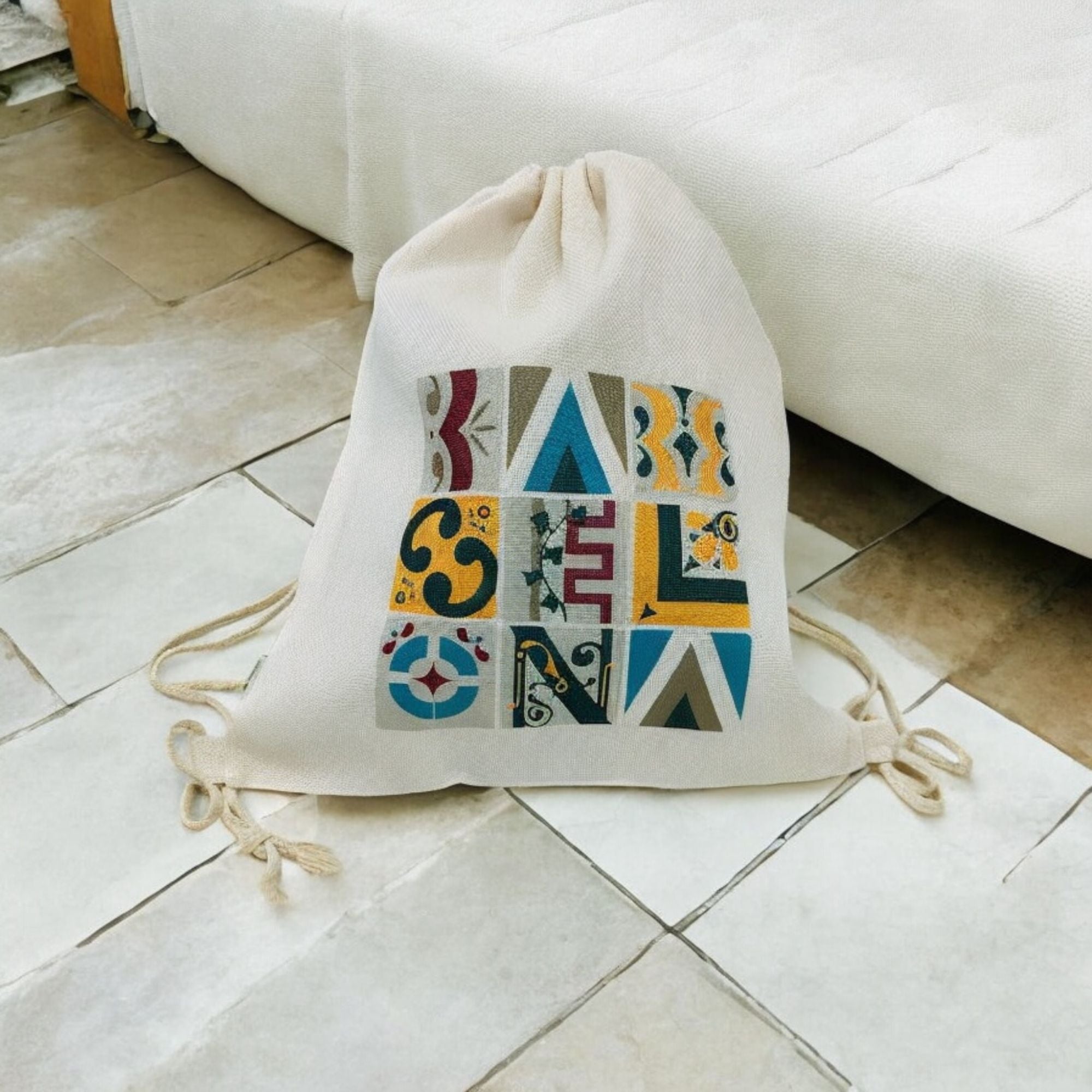 Mochila de sublimación de medidas 34cm x 42cm con asas de cordón, suaves y de gran confort.