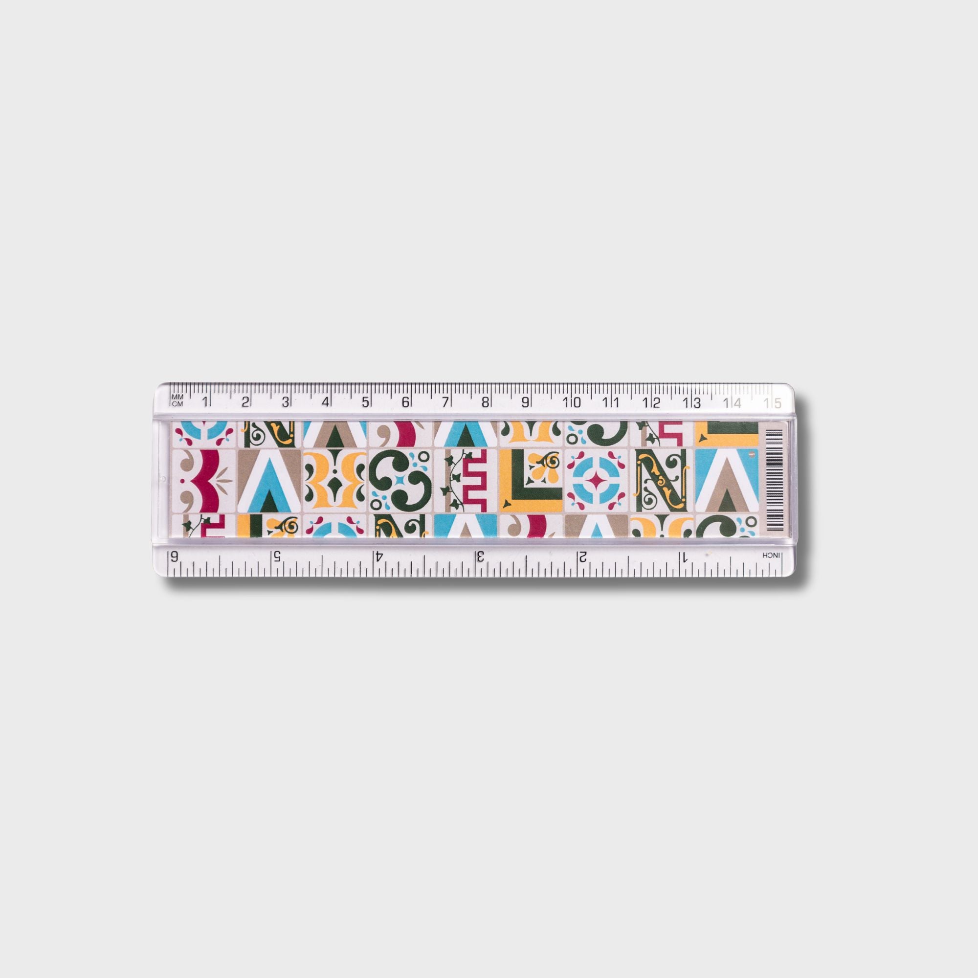 Regla de metacrilato de medidas exteriores 16x5cm, mide 15 cm o 6 inch.