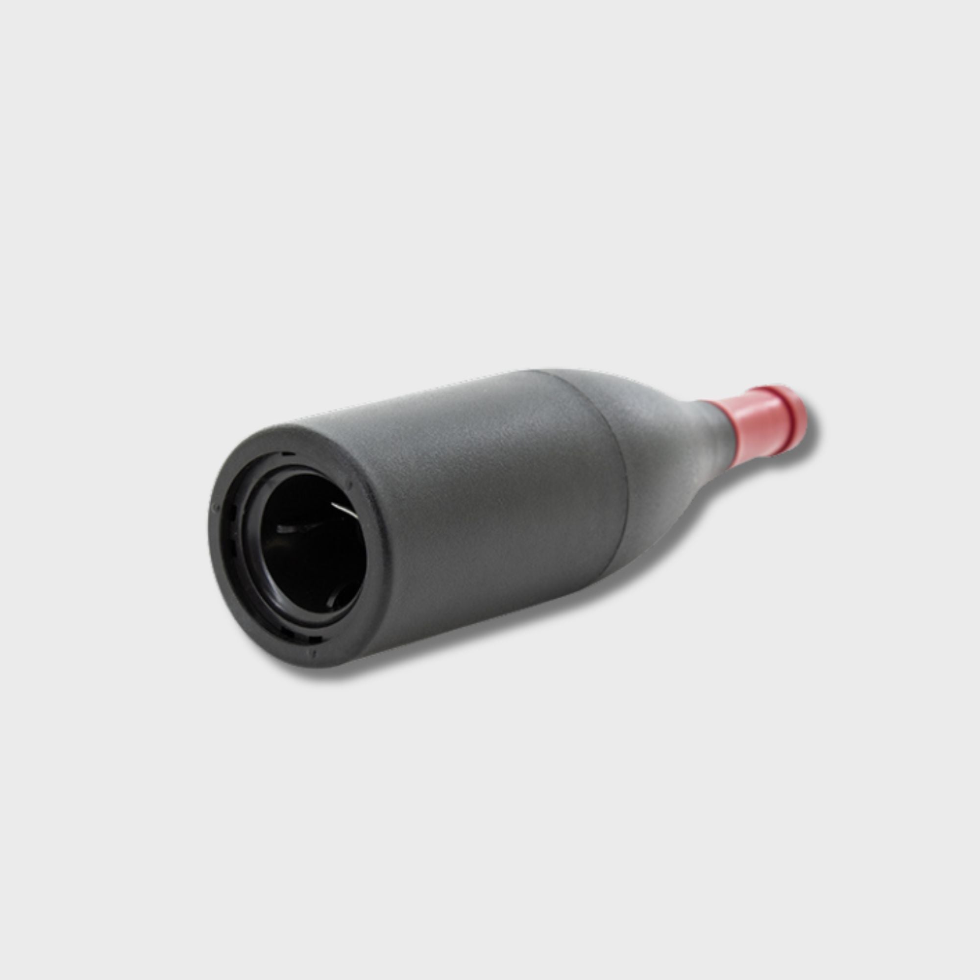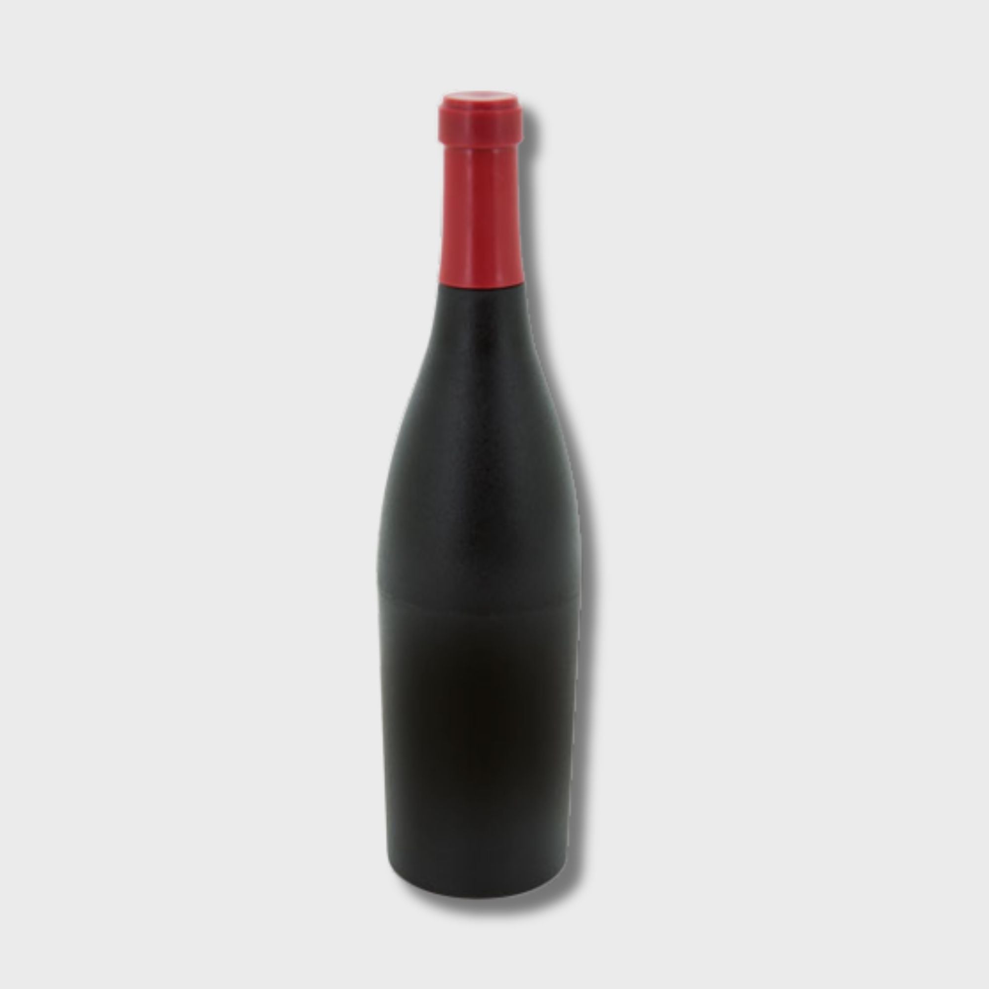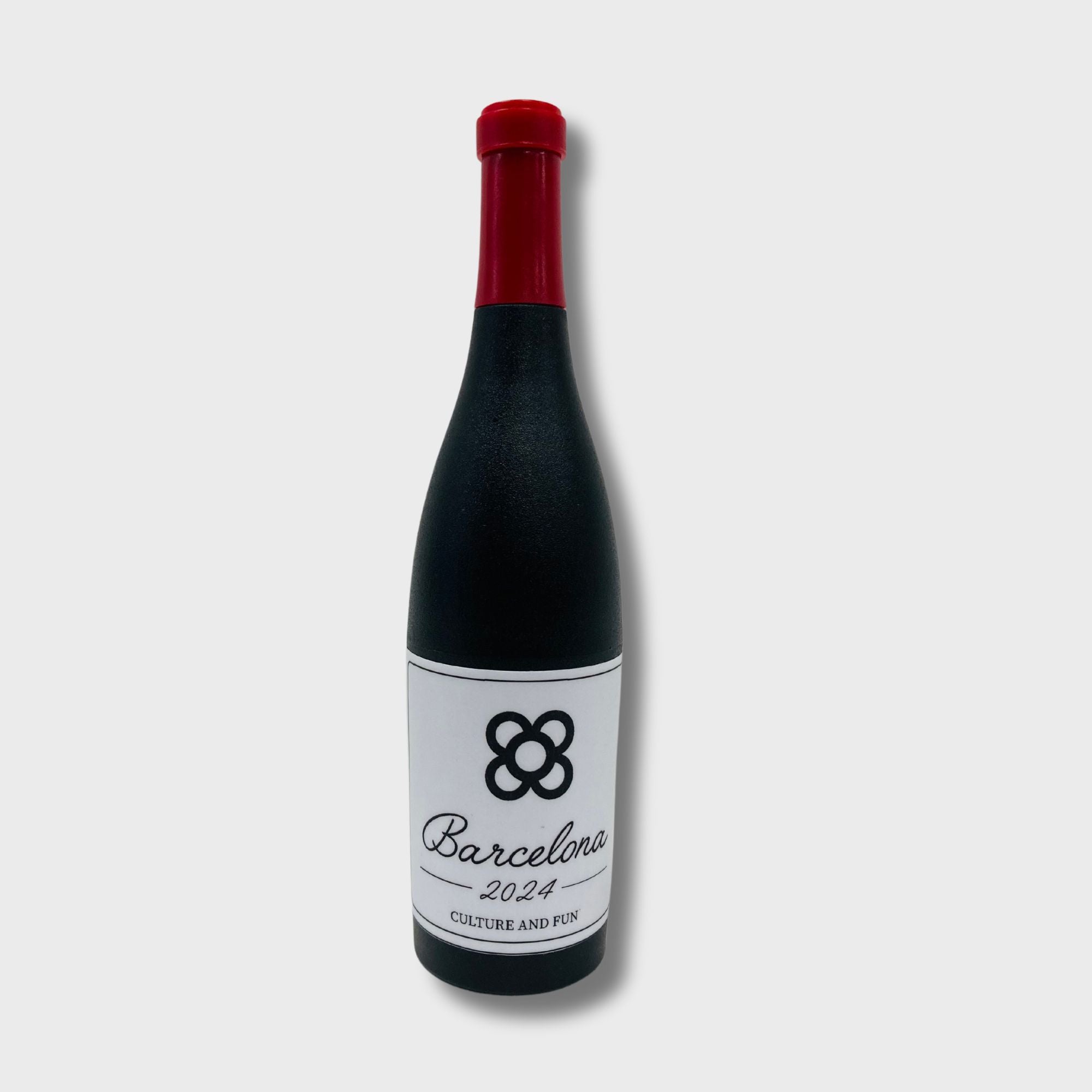 Practico sacacorchos con forma de botella de vino. De color negro con el tapón rojo y medidas de 4.30 x 18.30cm.