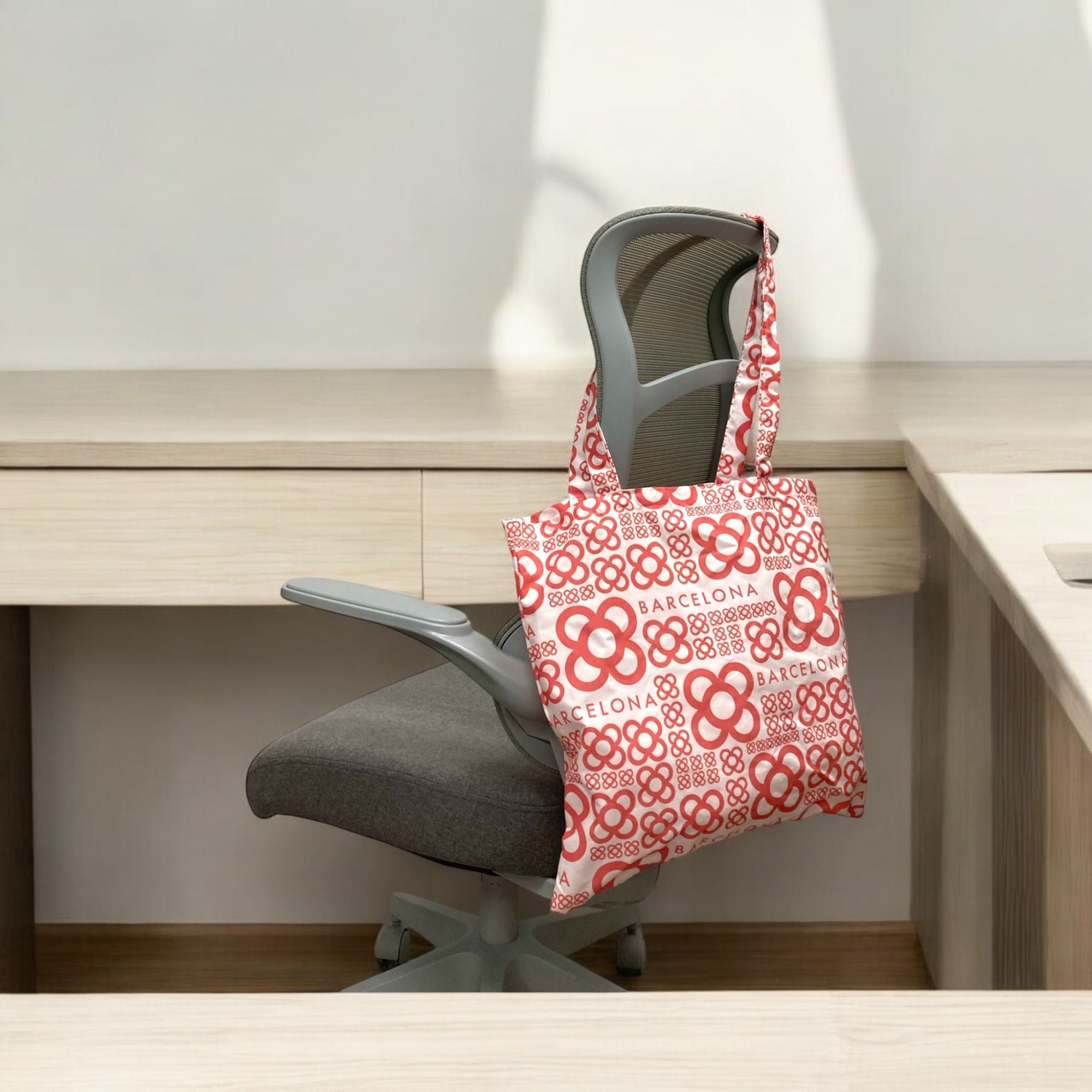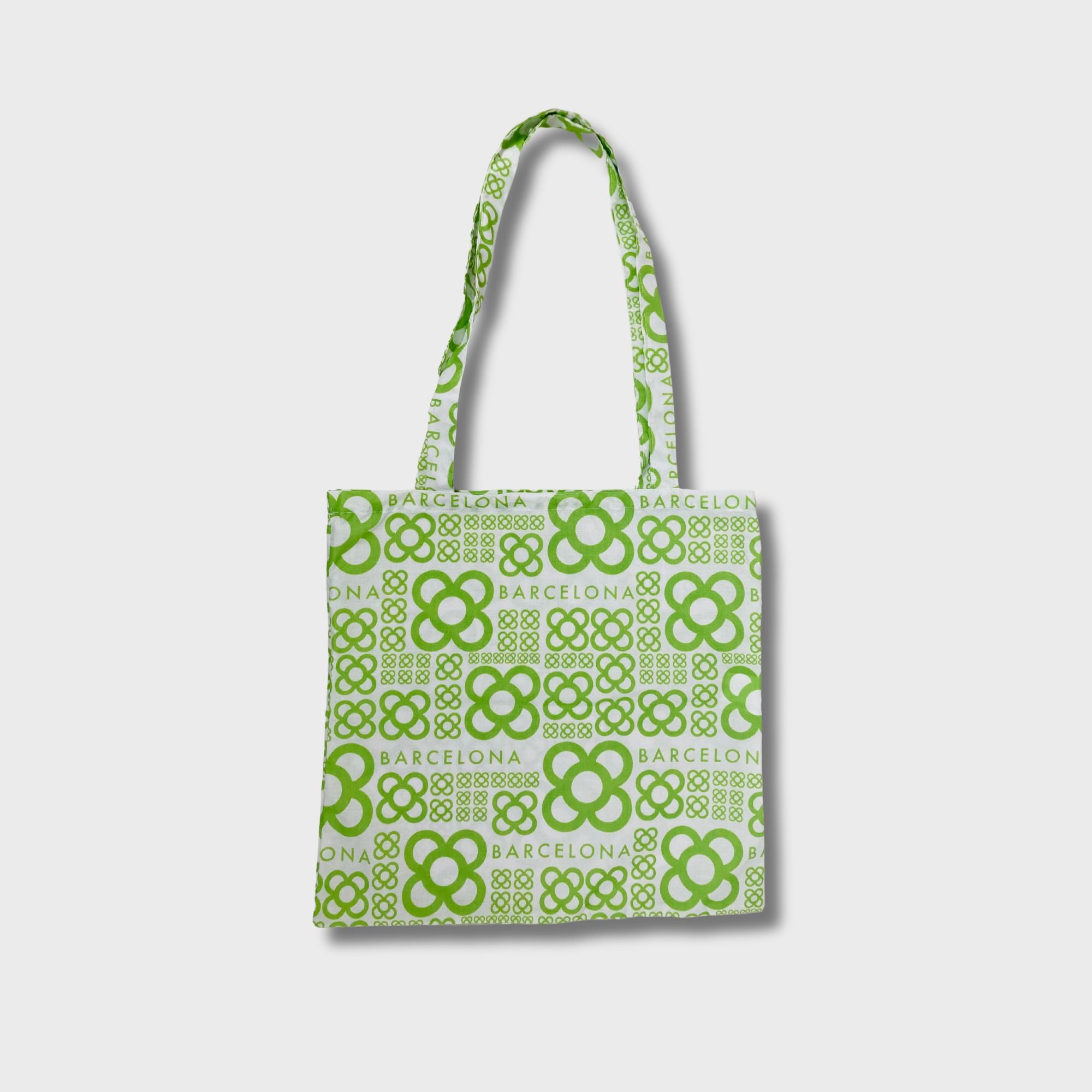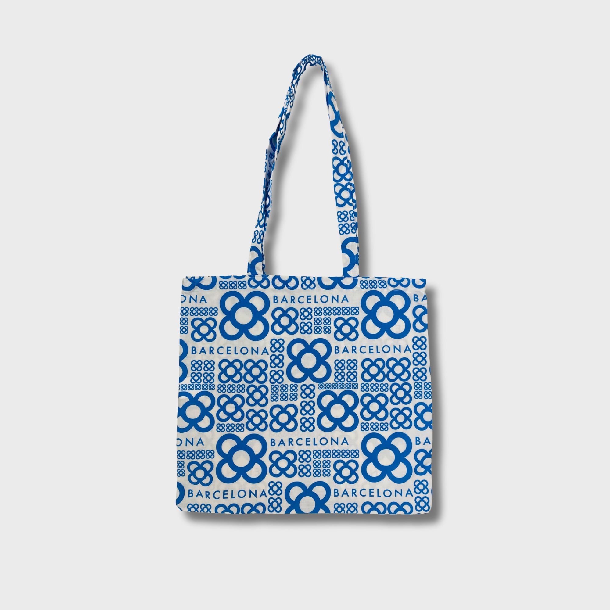 Bolsa de algodón blanco 100% y 120gr. De medidas 40cm x 40cm con asa larga. El diseño está presente en toda la bolsa incluyendo la asa. La confección de este artículo está hecha íntegramente en Barcelona. Disponible en cuatro colores