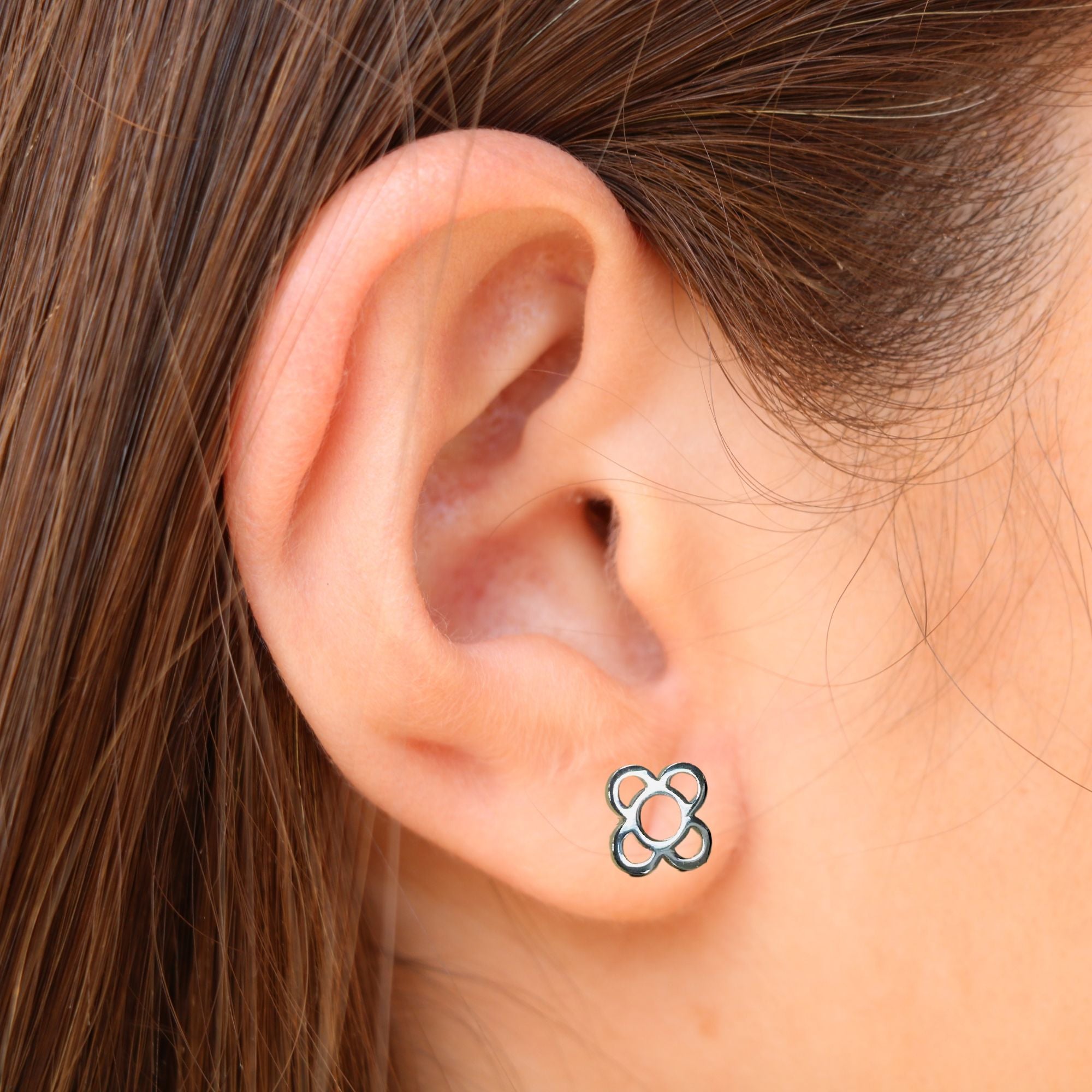 Pendientes de acero inoxidable de medida 10mm x 10mm con cierre de acero. Con la forma de la flor de las típicas losetas de Barcelona diseñadas por el arquitecto Josep Puig i Cadafalch.