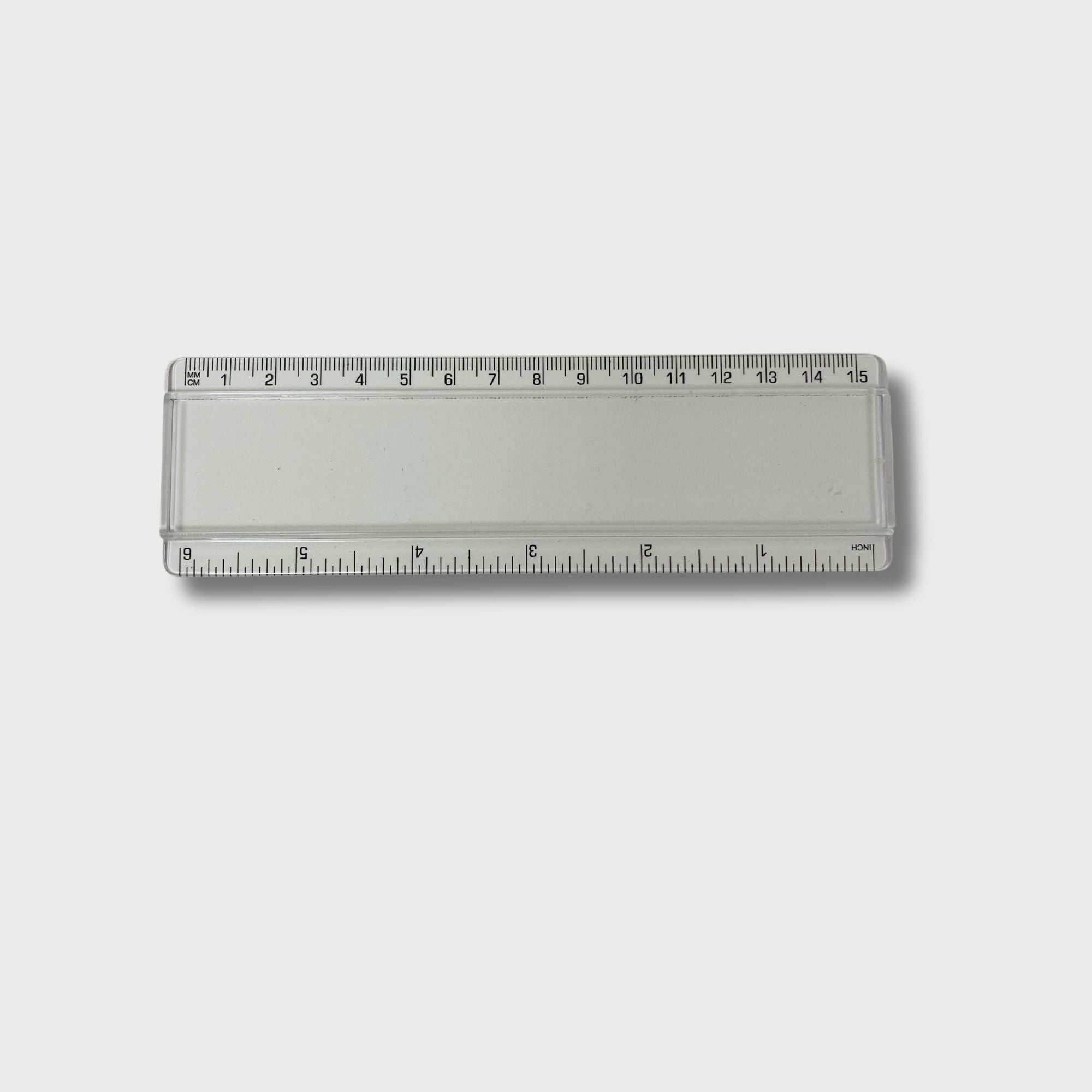 Regla de metacrilato de medidas exteriores 16x5cm, mide 15 cm o 6 inch. Diseño personalizable con el logo o texto.