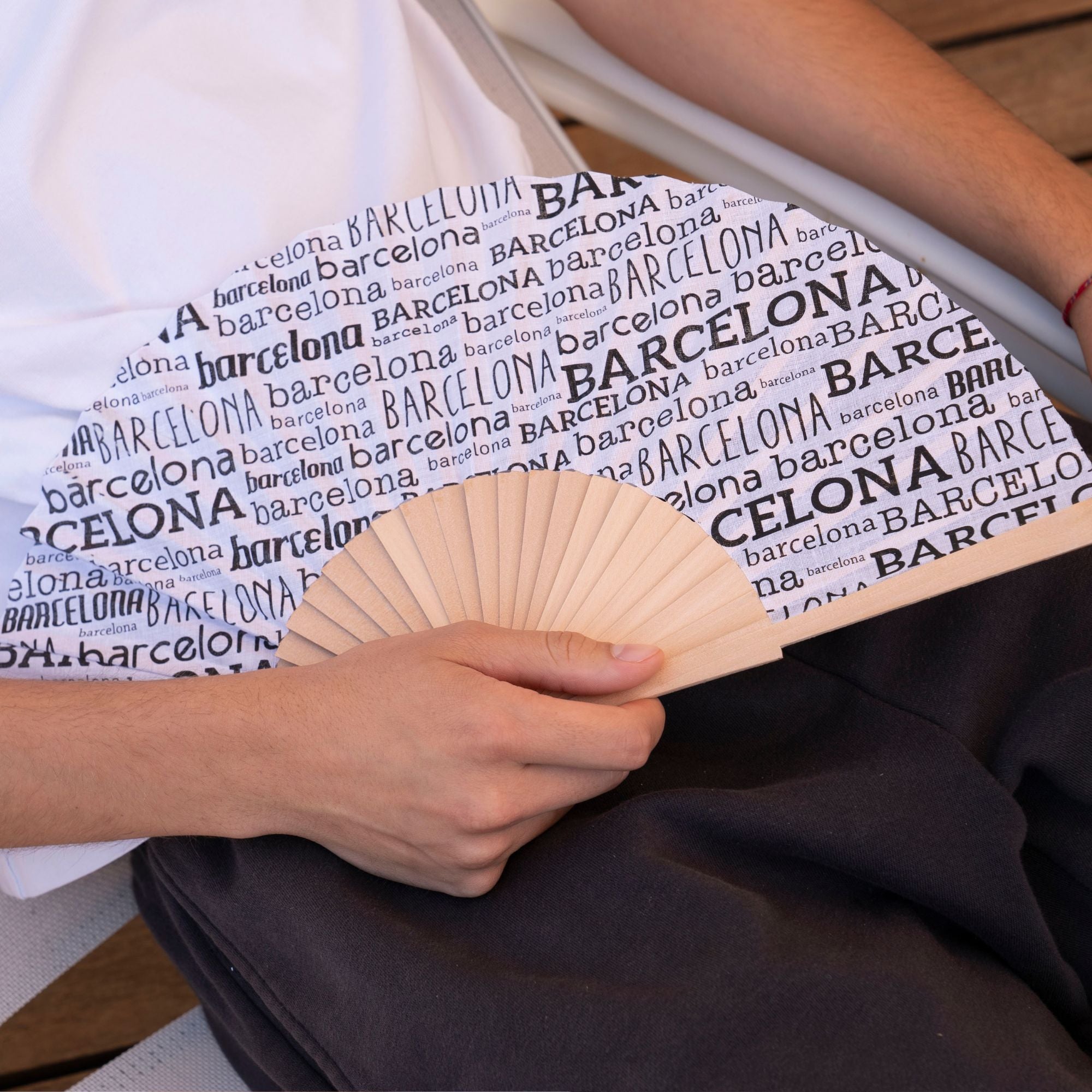 Abanico de madera natural estampado a una cara en tela de primera calidad, tiene 24 varillas y sus medidas son 23 cms plegado y 42 cm abierto.