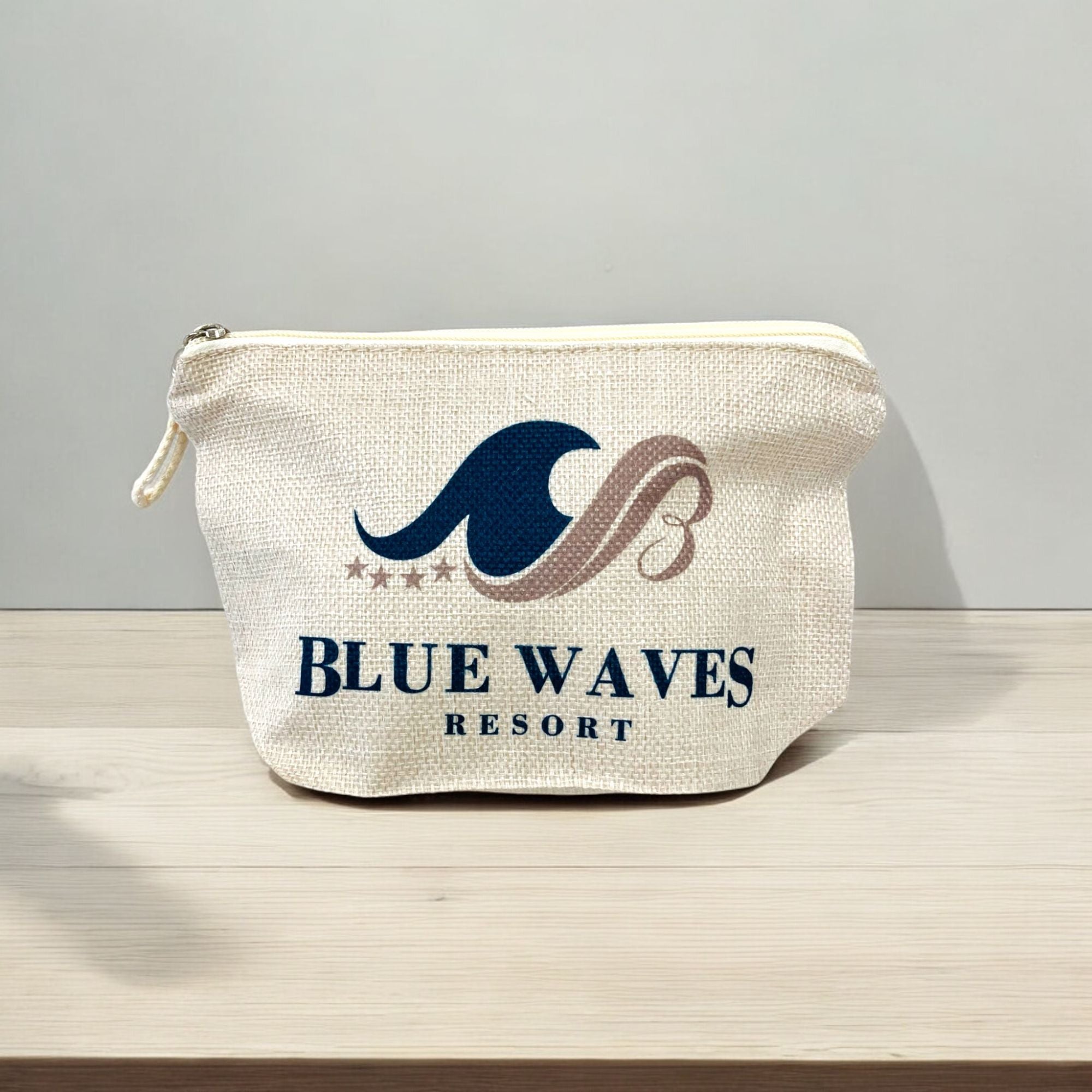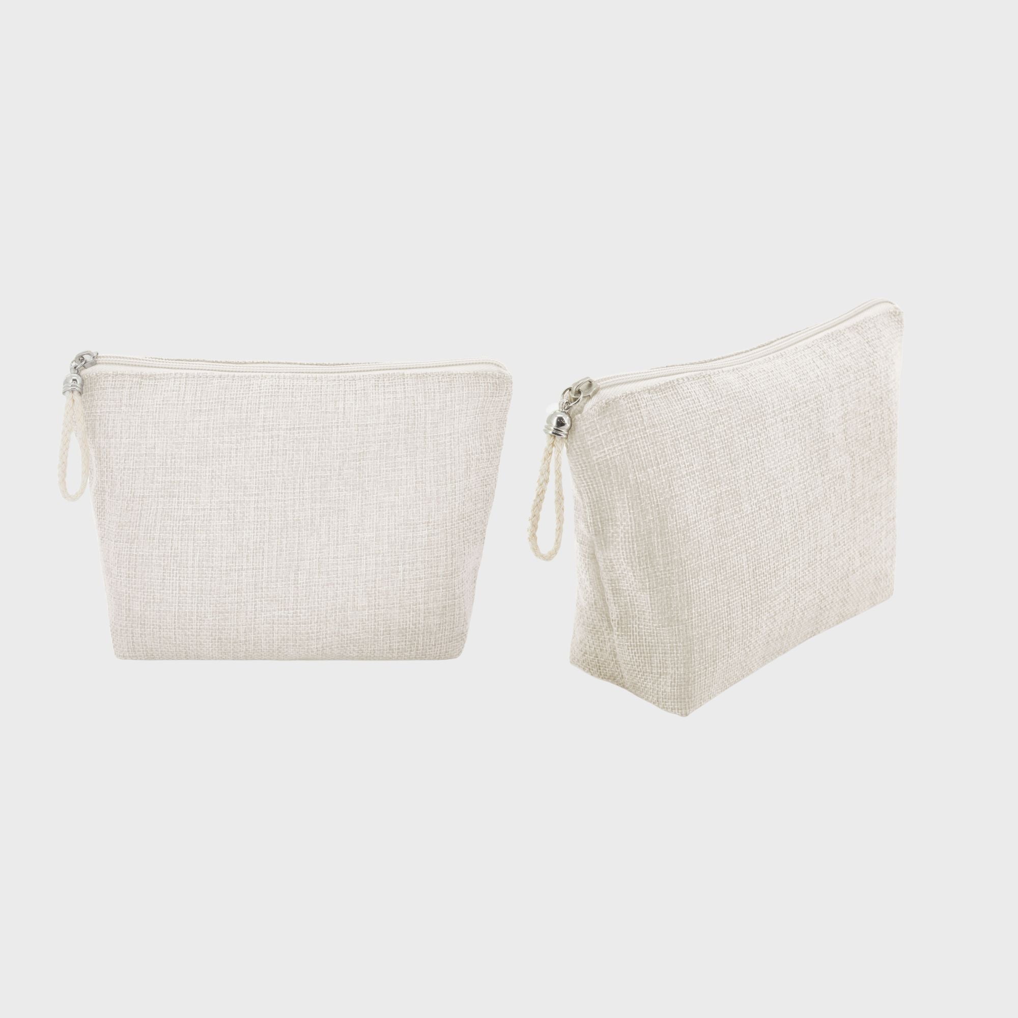 Elegante neceser para sublimación de medidas 22.00 x 14.00 x 6.50cm en color crudo y cremallera en la parte superior.