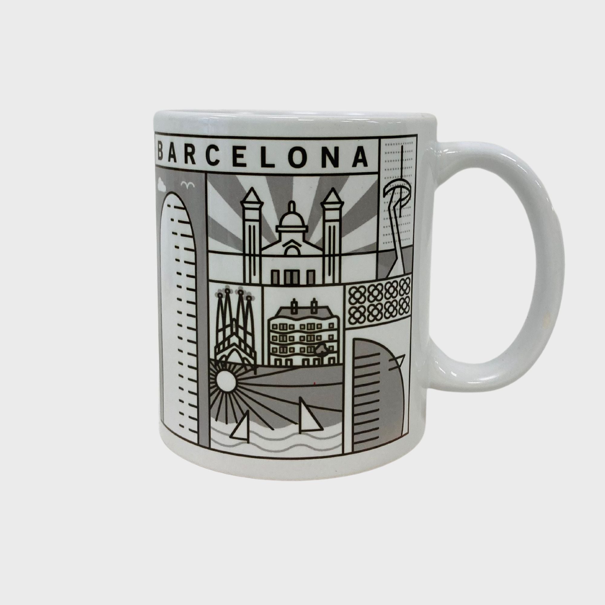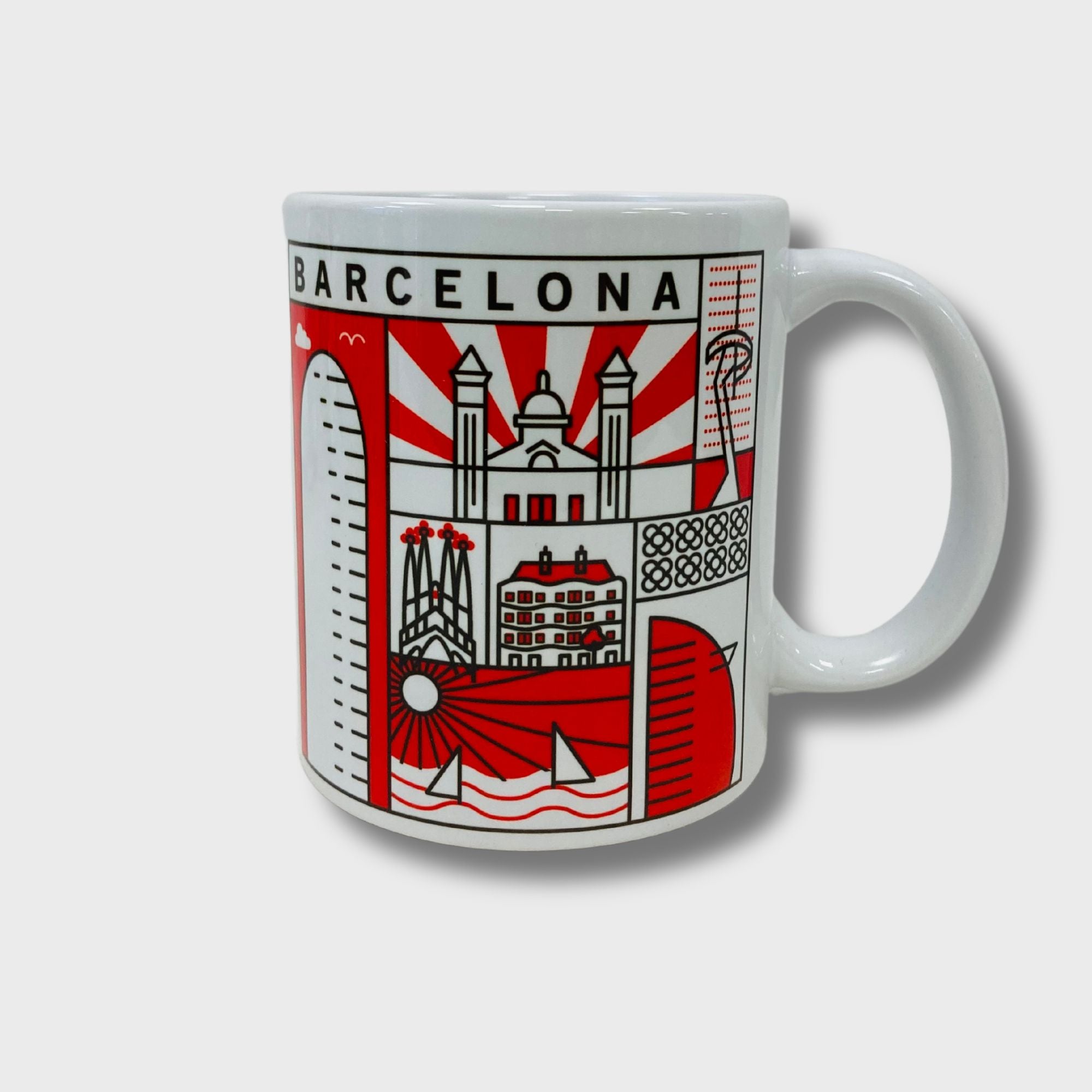 Mug de porcelana de 9,5 cm de alto, de 350ml impresa con fondo blanco. Disponible en cinco colores.